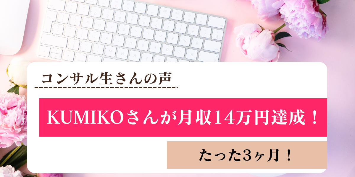 コンサル生さんのKUMIKOさんが、2023年8月にブログで月収14万円を達成しました。