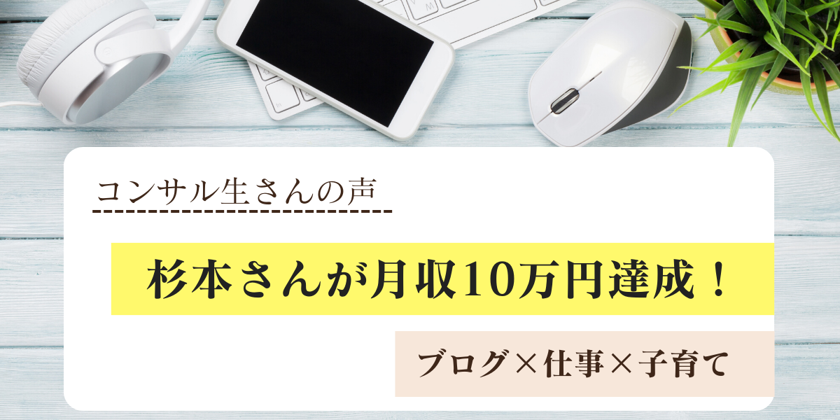 コンサル生さんの杉本さんが、2023年2月にブログで月収10万円を達成しました。