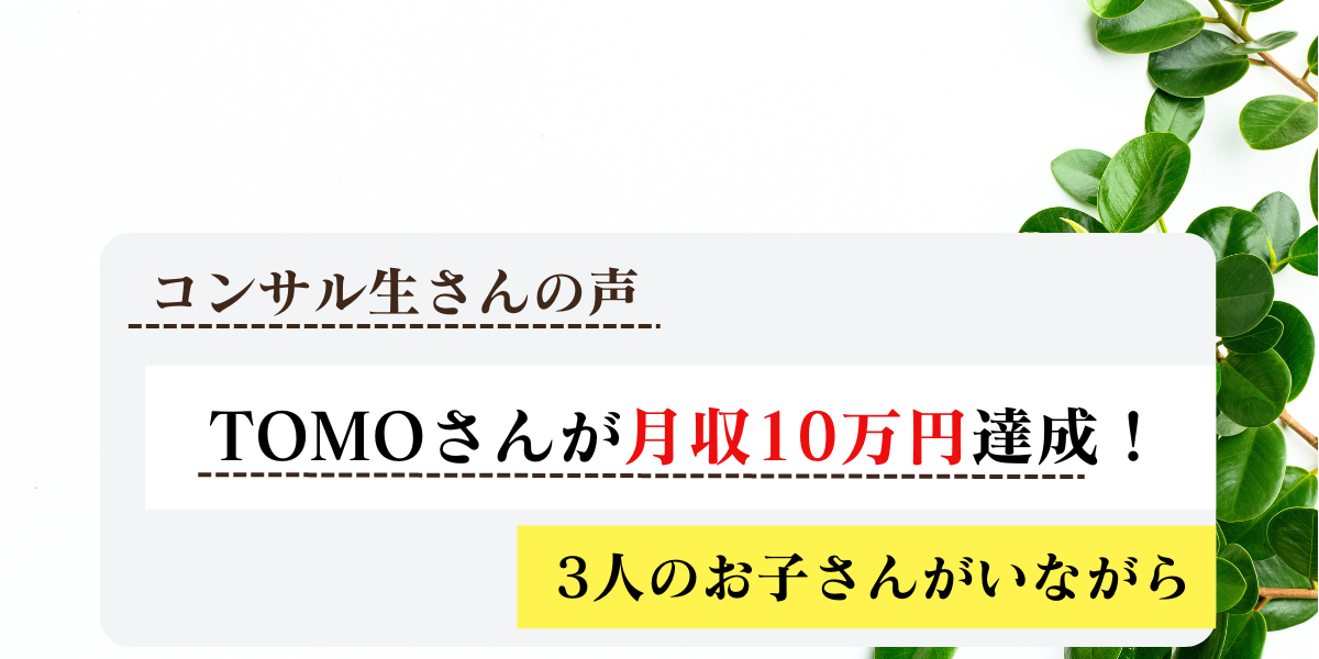 コンサル生さんのTOMOさんが、2024年3月にブログで月収10万円を達成しました。